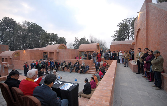 The history and significance of Taragaon's space and buildings complemented the idea of the project. Taragaon Hotel Village, being one of the early examples of urban projects in Kathmandu, was most suitable to exhibit the urban culture and heritage of the valley and beyond. The buildings were deteriorating, and it was essential to preserve this architectural heritage. With the guidance of Niels Gutschow and under the management of Natasha Saraf, the project began materializing. The intellectual counseling from Gutschow and Thomas Schrom played a huge part in successfully shaping the project.